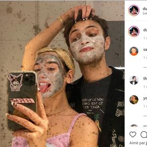 La chanteuse Dua Lipa et son petit ami Anwar Hadid, le 23 mars 2020. Rien de tel qu’un atelier masque de beauté en couple !