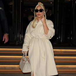 Lady Gaga a opté pour un manteau crème Celine et un sac Hermès à la sortie de son hôtel à Londres. (Londres, le 11 novembre 2021.)