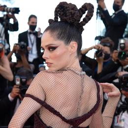 Et la palme du chignon le plus original revient cette année au mannequin Coco Rocha (et à Dessange qui a signé cette création). (Cannes, le 13 juillet 2021).