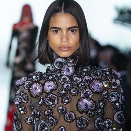 Le carré court asymétrique du défilé Alberta Ferretti prêt-à-porter automne-hiver 2021-2022.