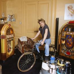 Jeans, tee-shirt, juke-box et Marilyn : chez lui, toujours un peu d’Amérique (A son domicile parisien, en avril 1988.)