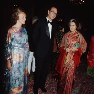 Jacques Chirac rencontre son homologue, la première ministre indienne Indira Gandhi. (New Delhi, 25 janvier 1976.)