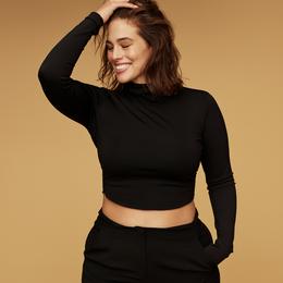 Ashley Graham (@ IMG Models) porte une chemise Ashley Graham × Marina Rinaldi, et une ceinture corselet en cuir, Marina Rinaldi.