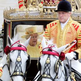 La reine Elisabeth II, assortie à son cocher, trotte aussi vers Buckingham Palace.