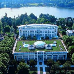 Vue aérienne de l’hôtel spa Les Célestins à Vichy.