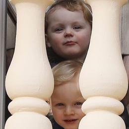 Nés le 10 décembre 2014, Jacques et Gabriella de Monaco se font face sur le balcon du palais princier, lors de leur première apparition publique. (Le 7 janvier 2015.)