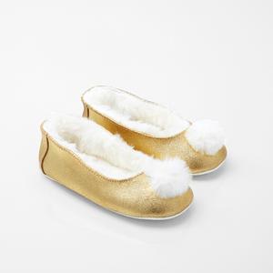 Chaussons dorés et fourrés, 39 €, Jacadi. En vente sur www.jacadi.fr.