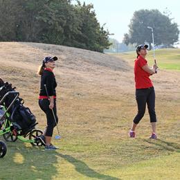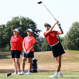 Le pro Thomas Fournier accompagné de Anne Alcantara, Marine Gout et Florence Campan du Golf Club de Toulouse.