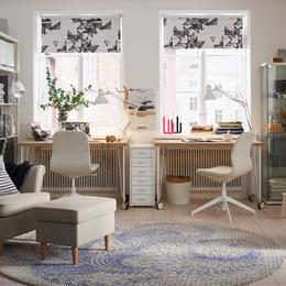 Double bureau côte à côte fait avec une table Linnmon /Krille, 120 x 60 cm, 99 €, Ikea. www.ikea.com.