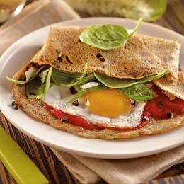 Voir la recette de galette de blé noir aux épinards, chèvre, oeuf et olives noires.