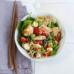 Voir la recette du bo bun de poulet aux légumes verts, épinards et asperges.