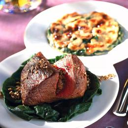 Voir la recette de coeur de rumsteck, gratin d’épinards et champignons.