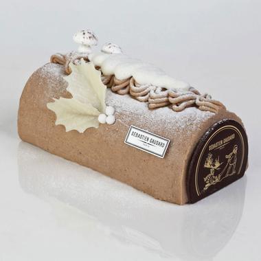 Amoureux de la tradition qu’il défend, Sébastien Gaudard est à l’affût des recettes possédant l’esprit de Noël. Ici il reprend la bûche du petit-fils de Pierre Lacam, créateur reconnu de la pâtisserie. Avec sa bûche signature marron poire, biscuit roulé aux amandes marrons et crème puis poire pochée, le chef vise juste pour une pâtisserie de saison.