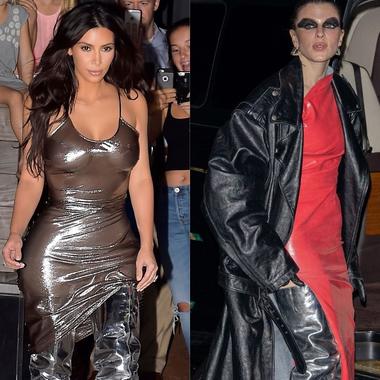 Kim Kardashian opte pour une jupe bijoux couleur argent tout comme Julia Fox au Festival International du Film de Toronto.