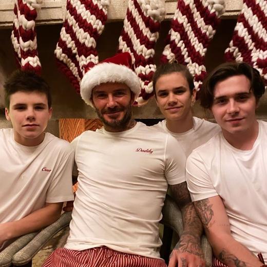 Victoria Beckham a partagé un cliché de son clan sur son compte Instagram, le mercredi 25 décembre. Son époux, David Beckham, y pose, bonnet de père Noël vissé sur la tête, devant une cheminée décorée, aux côtés de leurs trois fils, Brooklyn (20 ans), Romeo (17 ans) et Cruz (14 ans).