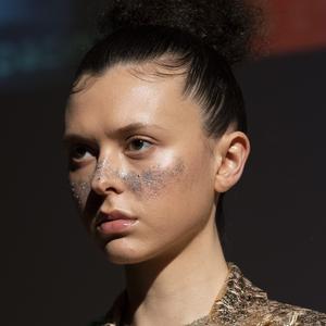 L’effet demi masque pailleté du défilé Anaïs Jourden automne-hiver 2020-2021. (Paris, le 1er mars 2020.)