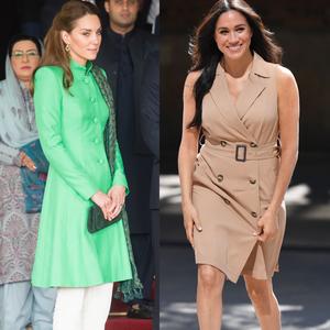 Meghan Markle à Cape Town le 24 septembre 2019 / Kate Middleton à Islamabad, le 15 octobre 2019.