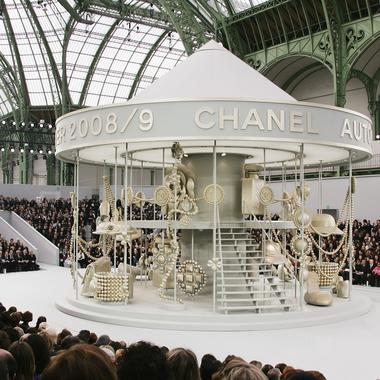 C’est un manège enchanté et perlé qui sert de décor au défilé prêt-à-porter automne-hiver 2008-2009. (Grand Palais, Paris, le 29 février 2008.)