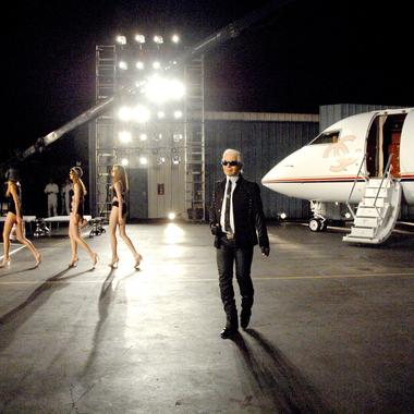 Pour présenter sa collection Croisière 2007-2008, Karl Lagerfeld a choisi le tarmac de l’aéroport de Santa Monica. (États-Unis, 18 mai 2007.)