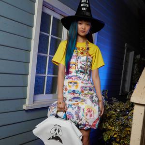 Jeremy Scott est connu pour s’amuser avec la mode. Ses défilés sont d’immenses terrains de jeux. De ses personnages de films d’horreur pour Halloween à ses croquis vivants, le directeur artistique de Moschino est littéralement un enfant terrible de la mode.