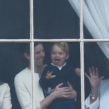 Quand le prince George a fait Monsieur Patate pour faire rire les paparazzis. (Fairford, 8 juillet 2016.)