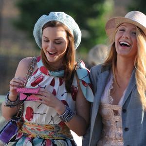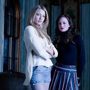 Les deux personnages principaux : Serena Van Der Woodsen (Blake Lively) et Blair Waldorf (Leighton Meester). Blair est dans son iconique look d’écolière tandis que Serena porte un short et une veste plus classiques.