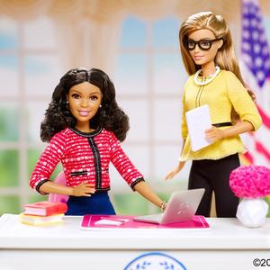 En 2016, tandis que les États-Unis s’apprètent à élire leur 45e président, la société Mattel imagine un duo 100% féminin à la tête du pays, décliné en plusieurs couleurs de peau. L’une des poupées ressemble d’ailleurs étrangement à Michelle Obama. Un message caché pour les élections à venir ?